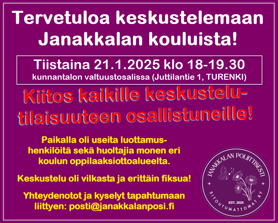 Valtavan suuret kiitokset kaikille eiliseen 21.1.2025 koulukeskusteluun osallistuneille!