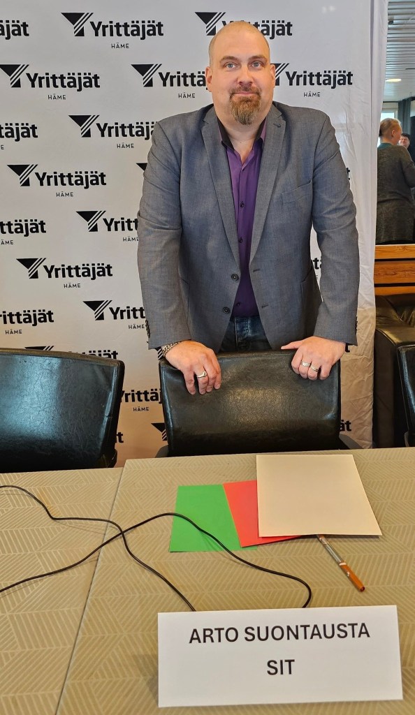 Kuntavaaliehdokas Arto Suontausta edustaa Janakkalan sitoutumattomia Janakkalan Yrittäjien vaalipaneelissa. Tapahtuman juontaa Juha Haukka.
